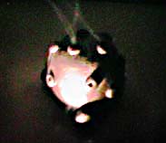 ▲デザインフェスタで買った陶器。タッコング的というか、吾妻ひでお的というか、このイボイボに惹かれて、つい購入。3000円くらいでした。作者は、コ山有コ、という方。各穴から、煙が立ち上るのですが、けっこう真ん中に集まってしまって、ブースカの王冠のようにはいきませんねえ^^;
