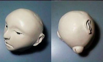 顔は人形の命。ここで、全体の雰囲気が決定するので、念入りに作りたいものです。顔を作っていると、ほんのわずかな違いで、美人になったり不美人になったりするのは、面白い発見です。整形美容医師の気持ちがよく解る^^; どうせ作るなら、オーラを発する顔を作りたいもんだ、と思うのですが、これが難しい(とほほ)。