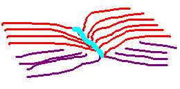 - 右図のような髪の束を作り(倍の長さの髪を用意し、真ん中をミシンなどで縫う。そして広げる)脳天に貼り付けます。